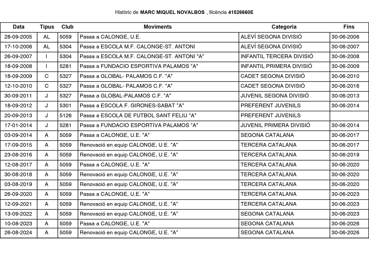 Calendari UE Calonge